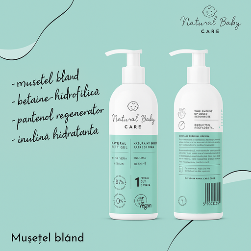 Natural Baby CareGel de duș natural pentru bebeluși – curățare delicată, grijă pură, zi de zi, în armonie cu natura. Răsfață pielea sensibilă a bebelușului cu ge...